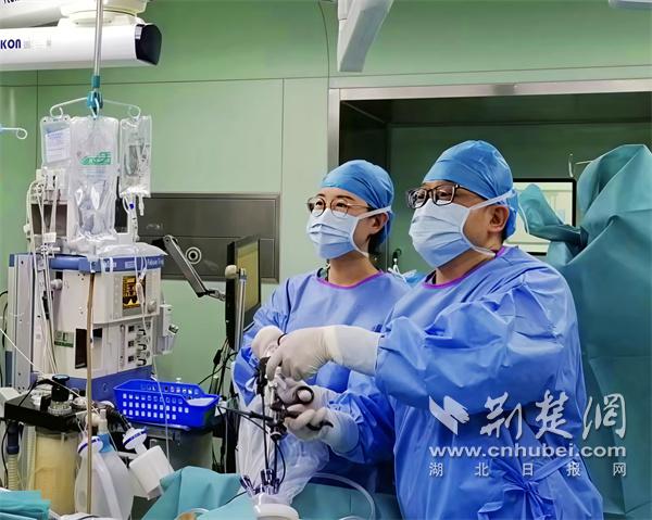 荆楚网(湖北日报网)讯(记者林琳通讯员刘珊珊)近日,一位年近百岁的老太太,出现腹部疼痛不适的症状。当他去医院检查时,结果却让他大吃一惊。一个直径约二十厘米、排球大小的巨大囊肿,正在她的盆腔内无声无息地生长。近日,武汉市中心医院妇科肿瘤中心专家团队成功完成了一场难度极高的手术,通过肚脐隐秘切口彻底切除巨大囊肿,打破了该院单孔腹腔镜手术最高年龄记录。